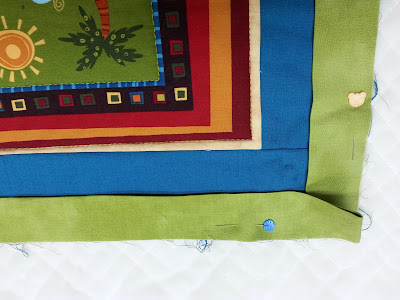 7) Después recortamos los sobrantes de guata y trasera a la distancia necesaria para hacer el bies del grosor que queremos, en mi caso he dejado un centímetro más o menos...